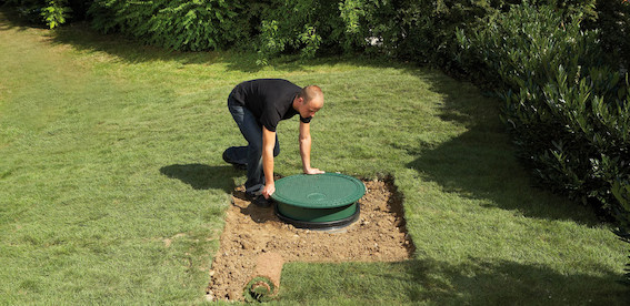 Kies een geschikte locatie voor uw regenwater tank, onder de oprit of in de tuin.